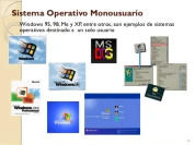 Un sistema operativo monousuario (de mono: «uno»; y usuario) es un sistema operativo que sólo puede se ocupado por único usuario en determinado tiempo. Ejemplo de sistema operativo son las versiones domesticas de Windows.
